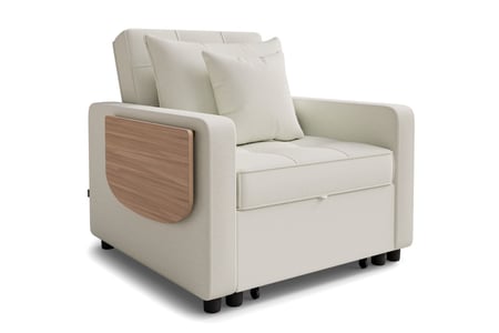 SUZIE armchair sofa bed blends comfort & durability with foam, wave springs, and a foldable side table. Easily converts to a 64 x 182 cm sleeping surface for modern living.