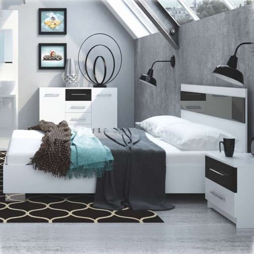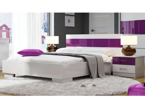 The DUBAJ bed combines modern elegance with practical design, featuring a glossy white finish and a distinctive purple gloss section on the headboard for a pop of colour. Crafted from durable 16mm laminated chipboard, this bed is built for both style and longevity. With a spacious sleeping area of 200 x 160 cm, it provides comfortable space for relaxation. Please note, the mattress is not included but can be easily ordered from our exclusive mattress collection to complete your perfect sleep setup.