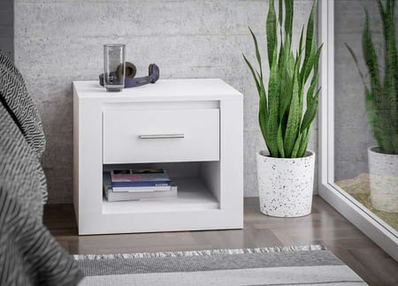 Introducing the white CLEO bedside table, the modern and functional bedside table in a sleek white finish. Crafted with elegance and practicality in mind, CLEO seamlessly blends contemporary design with convenience, making it a perfect addition to any bedroom decor.