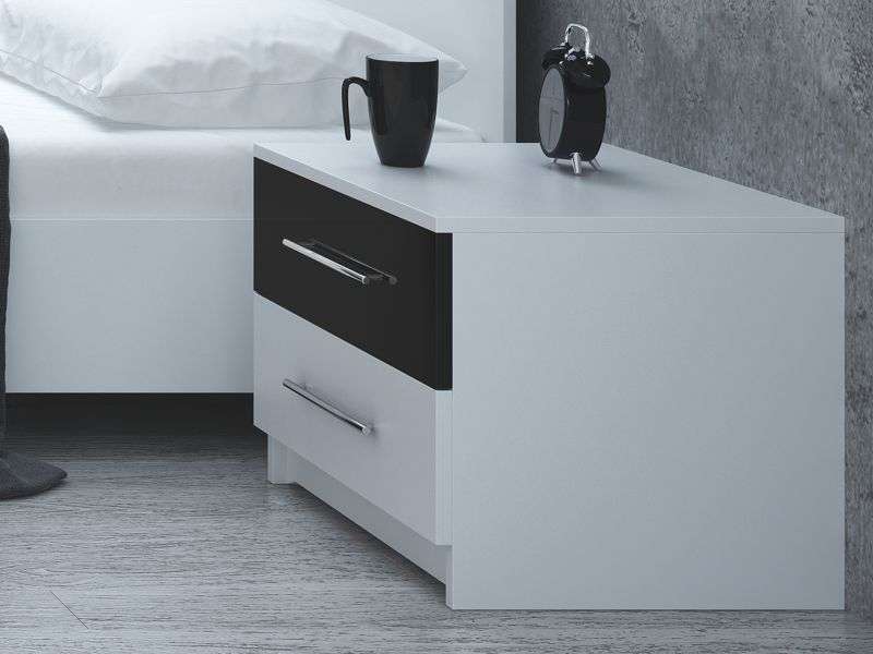 This stylish bedside table brings a fresh, contemporary touch to any bedroom. Crafted from durable 16 mm laminated chipboard, it’s designed to last while offering everyday functionality. With dimensions of 54 cm in width, 50 cm in depth, and 44 cm in height, it provides a compact yet spacious solution. The two drawers, featuring eye-catching white and black gloss fronts, offer ample storage for your nighttime essentials, keeping your space tidy and organised. Sleek, practical, and full of modern charm — the perfect bedside companion!