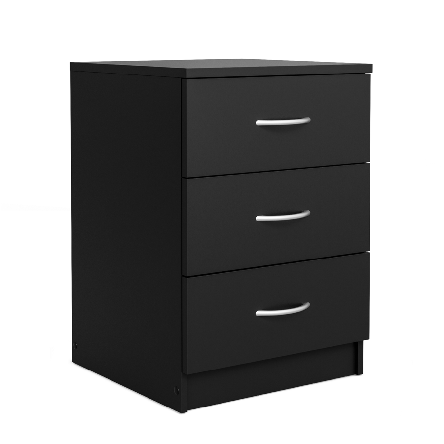 The ESSENTIAL bedside table D3 combines modern simplicity with everyday practicality. With its clean black finish and compact form, this nightstand offers both aesthetic appeal and functional storage. It’s an excellent choice for bedrooms where space is limited but organisation is essential. The three-drawer design makes it especially suitable for storing everything from reading glasses to notebooks and personal accessories.
