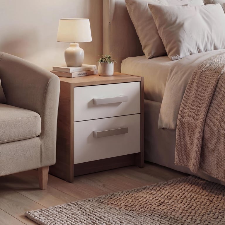 The elegant combination of white drawer fronts and an oak-effect frame creates a modern yet timeless look. This versatile design blends seamlessly with a wide range of interiors - from Scandinavian and contemporary to more classic bedroom styles, making it an easy addition to your home.