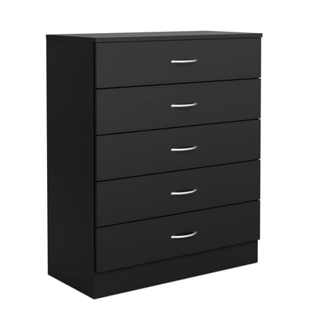 Maximise your storage with the ESSENTIAL 5-drawer chest in black - a compact and stylish solution for any modern bedroom, hallway, or home office.
