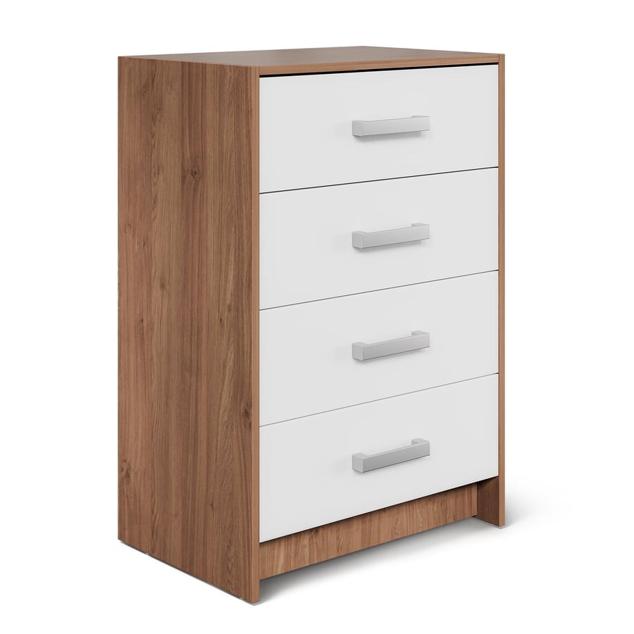 Add practical storage and modern style to your home with the OAKRIDGE chest of drawers by Dako. Designed for everyday convenience, this elegant unit combines four spacious drawers, a compact footprint, and a timeless oak and white finish that blends effortlessly with modern interiors. With its clean lines, comfortable handles and quiet soft-close system, the OAKRIDGE chest offers both style and functionality for organised living.