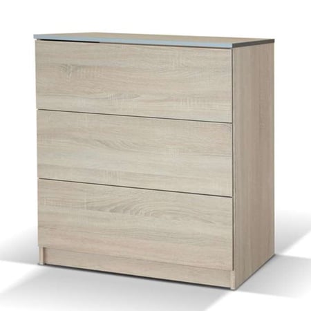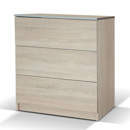 The VISTA chest of drawers in Sonoma colour features three spacious drawers and a durable 16 mm laminated chipboard design, combining style and functionality.