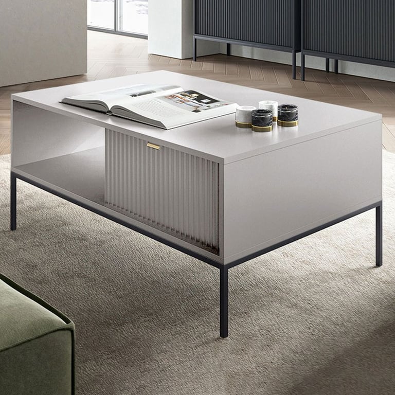 The coffee table NIVA fashionable shape will beautify the decor the living room. Increased functionality with a shelf and a drawer and well-thought-out dimensions of the table top makes this piece of furniture great for family use.