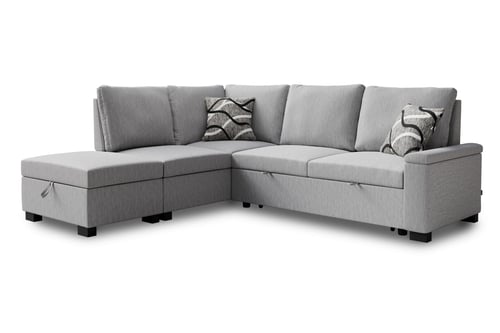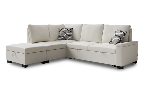 The ABIGAIL corner sofa bed with a footstool is a stylish and functional piece designed for modern living. Featuring a spacious seating area, footstool with built-in storage, and sleeping function that transforms it into a bed, it combines comfort and convenience in one elegant design.