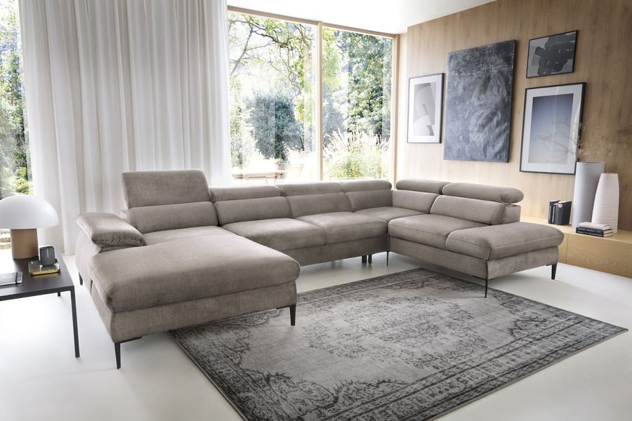 Upgrade your living space with the BELLUNO U-2 Corner Sofa – a luxurious U-shaped sofa offering 353 cm of comfort, optional bed function, and hidden storage. Perfect for modern homes seeking both elegance and practicality.