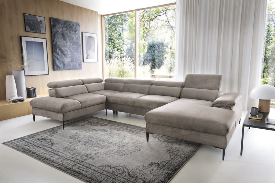 Crafted with a solid hardwood frame and supported by sturdy metal legs, the BELLUNO U-2 ensures stability and resilience for years of use. The high-resilience foam cushions and adjustable headrests provide exceptional comfort, adapting to your body for the ultimate relaxation. Upholstered in premium fabric, this sofa exudes sophistication and softness to the touch.