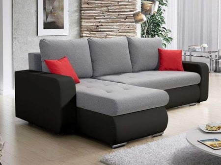 The corner sofa bed DAVID grey / black is a striking and functional piece of furniture that seamlessly blends modern design with versatile functionality, making it a standout addition to any living space.