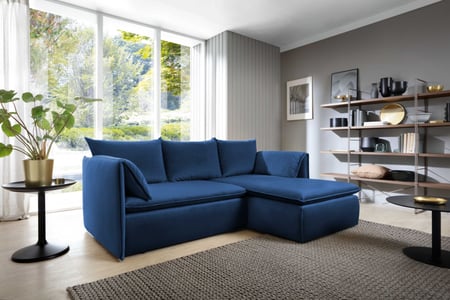 The DORATO Corner Sofa can be easily transformed into a comfortable sleeping area, providing additional functionality for overnight guests. The convenient fold-out system ensures effortless setup, turning the sofa into a bed in seconds.
