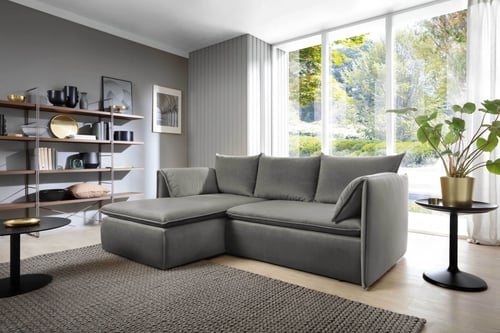 The DORATO Corner Sofa can be easily transformed into a comfortable sleeping area, providing additional functionality for overnight guests. The convenient fold-out system ensures effortless setup, turning the sofa into a bed in seconds.