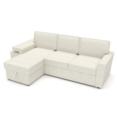 EVERLY corner sofa bed in cream with storage, sleeping function (117 x 192 cm), 2 footstools, and reversible layout—style and comfort in one smart design.