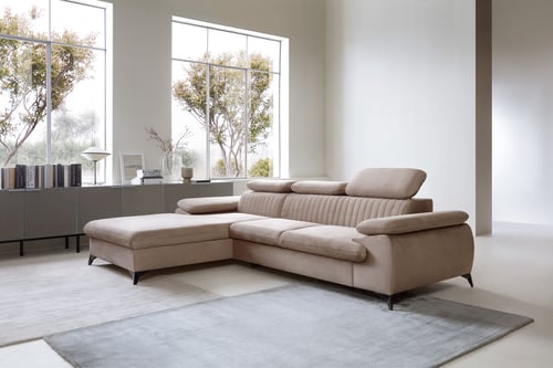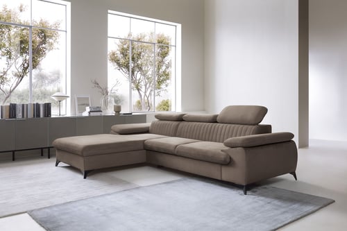 Every element of the FASCIO M Corner Sofa is crafted with premium materials to ensure long-term comfort and style. The meticulous vertical quilting enhances the visual texture, while the adjustable headrests personalise your seating experience. Supported by elevated black legs, the sofa exudes an air of refined elegance.