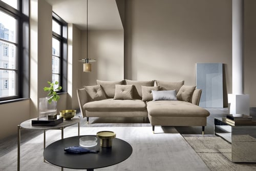 GLAMO Corner Sofa – a luxurious, multifunctional sofa with sleeping function, storage, and premium comfort. Perfect blend of modern design and practicality for elegant interiors.