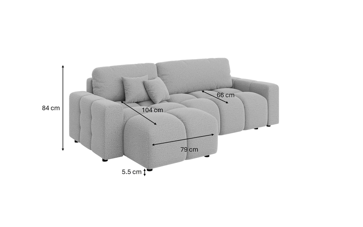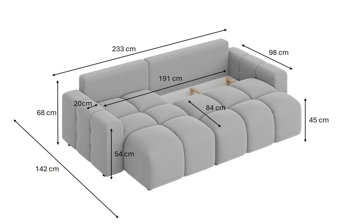 The LAINEY Corner Sofa Bed is the perfect combination of style, comfort, and functionality. With its spacious sleeping area, convenient storage container, and two decorative cushions, it offers everything you need for both day-to-day lounging and overnight guests. Its versatile design fits seamlessly into any room, while the durable build ensures long-lasting use. Whether you're looking to maximise space, enhance comfort, or add a touch of elegance to your home, the LAINEY Corner Sofa Bed is the ideal choice. Don't miss out on this practical and stylish addition to your living space!