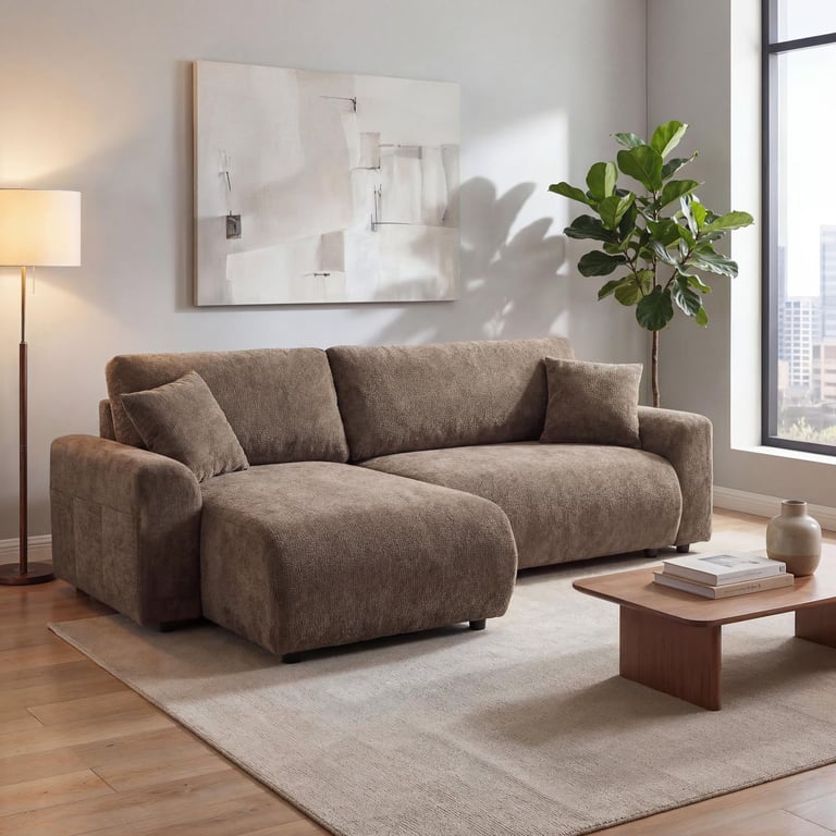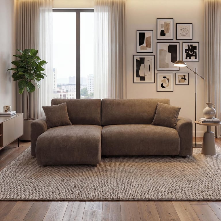 The LORRAINE corner sofa bed by Dako is designed for modern homes where comfort, practicality and timeless style matter equally. With its soft, inviting upholstery, generous seating and cleverly integrated sleeping function, LORRAINE easily adapts to everyday life - whether you are relaxing with family, entertaining guests or accommodating overnight visitors.