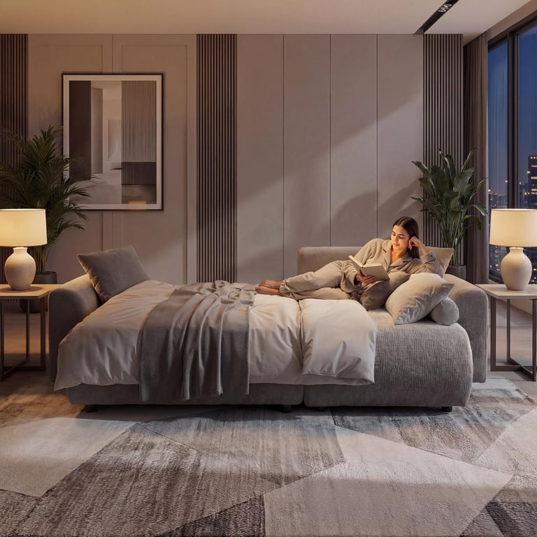 The LORRAINE corner sofa bed by Dako is designed for modern homes where comfort, practicality and timeless style matter equally. With its soft, inviting upholstery, generous seating and cleverly integrated sleeping function, LORRAINE easily adapts to everyday life - whether you are relaxing with family, entertaining guests or accommodating overnight visitors.