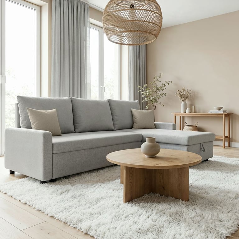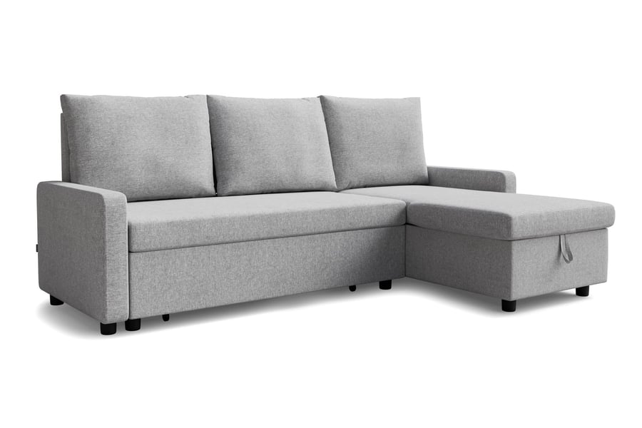 The corner sofa bed features a cleverly integrated storage container, seamlessly built into the chaise section. This hidden compartment offers generous space to store extra bedding, pillows, blankets, or everyday essentials, helping you keep your living area tidy and organised. Designed for easy access, the storage lifts smoothly, allowing you to reach items without hassle. Perfect for smaller homes or anyone who values smart storage solutions, this built-in container adds practicality without compromising the sleek look of the sofa.