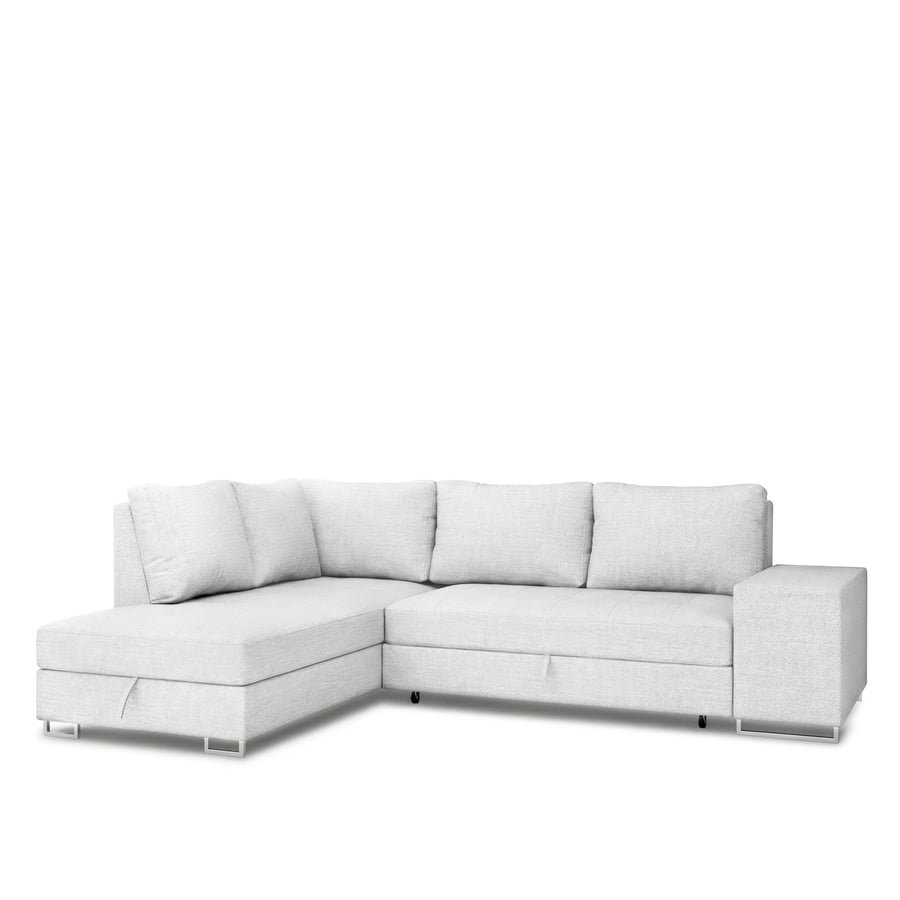 This modern corner sofa bed MARTHA is the perfect combination of style, comfort, and functionality. Upholstered in cream fabric, it complements any décor while providing a cosy seating and sleeping experience. The wave springs and foam filling ensure excellent support and long-lasting comfort. Featuring a convenient sleeping function, it easily transforms into a spacious bed in seconds. A built-in storage compartment adds extra practicality, offering a discreet space for bedding and essentials. Ideal for any home, this versatile sofa is perfect for relaxing, hosting guests, or maximising space.