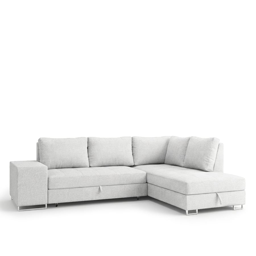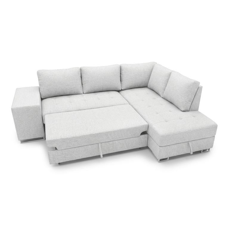 This versatile corner sofa bed features a built-in storage container, providing a practical solution for keeping your living space tidy. Perfect for storing bedding, pillows, or everyday essentials, the spacious compartment helps maximise space in any home. With its modern design and smart storage, it’s a stylish and space-saving addition to any room.