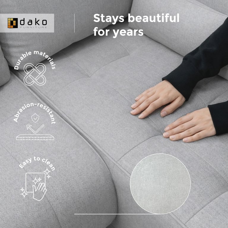 Crafted from high-quality fabric, the NESSA is finished in a material that’s resistant to abrasion and everyday wear. It stands up well to busy households, is easy to clean and maintains its appearance even with frequent use. The resilient upholstery makes it an ideal choice for families, pet owners or anyone wanting a long-lasting, low-maintenance sofa.