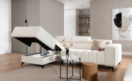 The ROSSENTO corner sofa is equipped with a practical and easy-to-use sleeping function, ideal for both occasional guests and everyday needs. Thanks to the Puma-type mechanism, the bed unfolds effortlessly in a single smooth motion — no heavy lifting or complicated steps required. Once extended, the sofa reveals a spacious sleeping surface of 136 × 220 cm, providing plenty of room for a restful night’s sleep. This function blends seamlessly with the sofa’s design, offering convenience without sacrificing aesthetics.