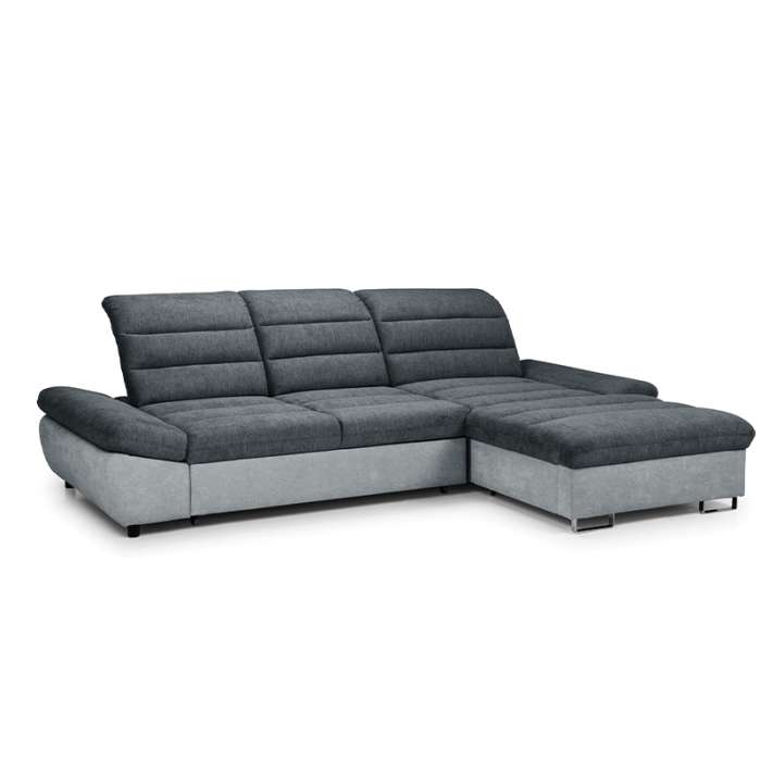 Our ROVANA Corner Sofa Bed has stylish cushioning with quilted seating, curved back cushions, plus three levels of adjustable comfort.