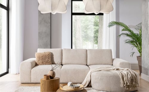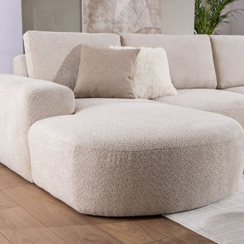 Introduce a new level of comfort and calm to your living space with the TOMASSO 1 corner sofa, upholstered in ultra-soft bouclé fabric. With its rounded edges, minimalist silhouette, and neutral palette, TOMASSO 1 invites you to unwind in effortless style.