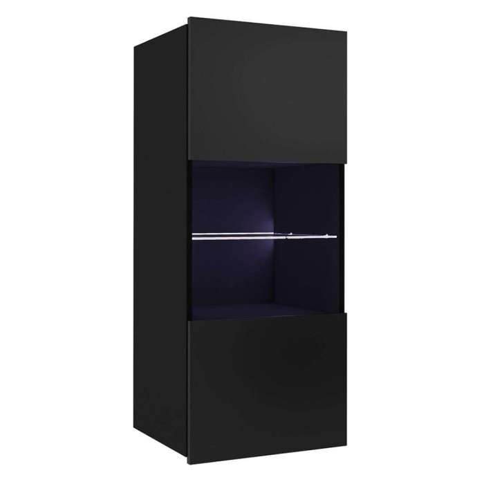 With a black matt body and a black gloss front, this hanging display cabinet offers a striking contrast that adds a sophisticated, modern touch to any room. The combination of finishes creates a sleek, refined look while ensuring durability and style. Perfect for showcasing your items in an elegant and functional way.