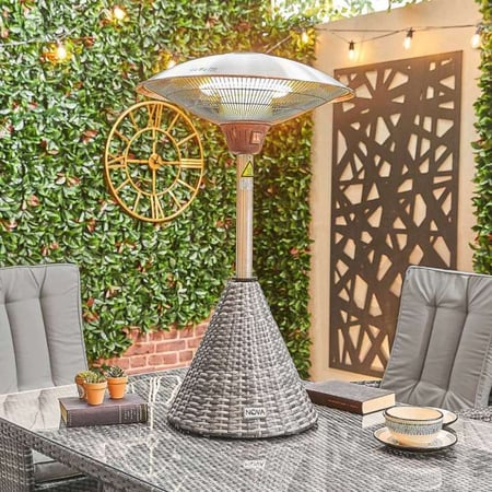 The Table Top Electric Patio Heater with Rattan Base, boasting a 2.1kW power output, is the ideal complement to any dining or sofa set. Its compact design fits snugly on top of your coffee or dining table, providing a warm and inviting ambiance for you and your guests to relish in the cool summer evenings.