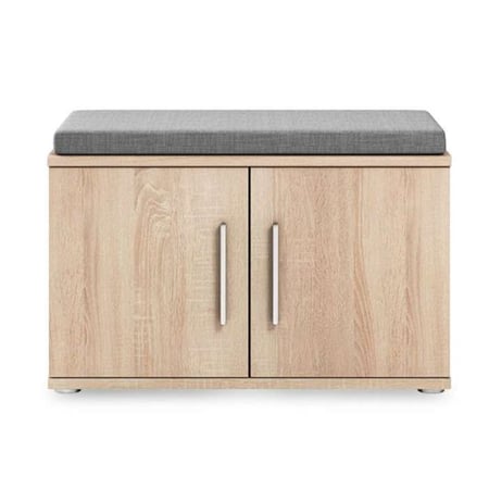Elevate your entryway with this stylish and practical shoe storage bench. Crafted from high-quality materials, it boasts a durable structure designed to last. Finished in a warm oak sonoma colour, it adds a touch of natural elegance to any space. The top features a soft, comfy cushion, offering a cosy spot to sit while putting on or taking off your shoes. With its perfect balance of functionality and design, this piece not only keeps your footwear neatly organised but also enhances your home’s aesthetic with its inviting charm.