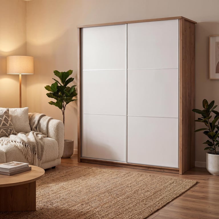 Bring order, style and everyday ease to your bedroom with the OAKRIDGE wardrobe by Dako. Designed with modern living in mind, it combines generous storage, a clean oak-and-white finish, and a space-saving sliding door system, making it a practical yet elegant solution for both compact and spacious interiors.