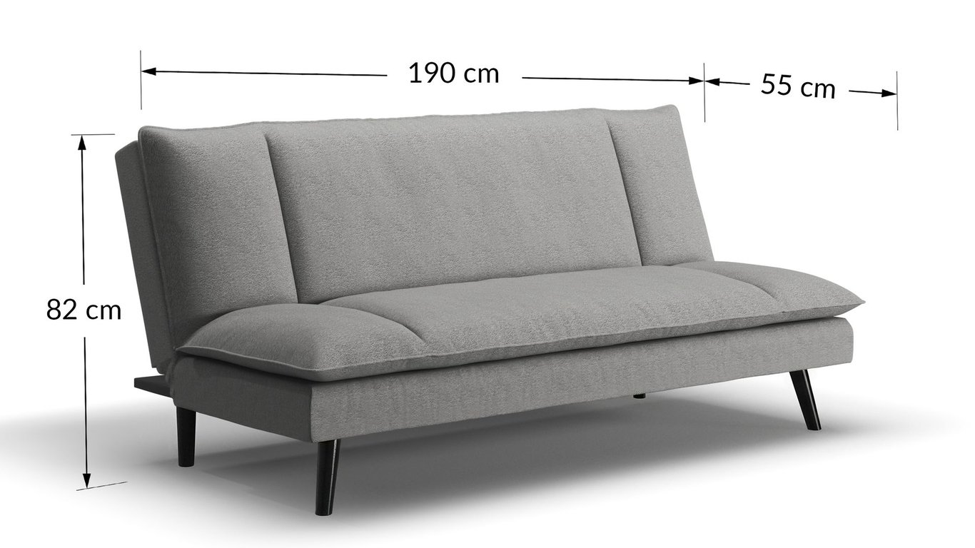 The CINDY sofa bed is a stylish and functional addition to any home. Featuring a convenient click-clack mechanism, it effortlessly transforms from a cosy sofa to a comfortable bed. Built with durable wave springs and high-quality foam, it offers excellent support for both sitting and sleeping. Perfect for modern living, CINDY blends comfort with practicality.