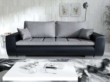 Transform your living space with the elegant Sofa Bed THOMAS in Grey / Black. Dual-tone design, ample sleeping area, and smart storage make it a must-have piece!