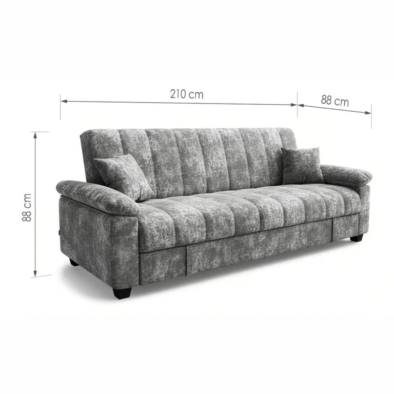 Imagine a sleek and inviting sofa, perfectly balanced in its proportions. With a width of 210 cm, it offers ample space for lounging or hosting guests comfortably. Its depth of 88 cm ensures a cosy yet spacious seating experience, allowing you to sink in just enough for relaxation without feeling cramped. Standing at a height of 88 cm, it strikes a harmonious balance between support and comfort, making it suitable for various interior settings, from modern living rooms to cosy dens.