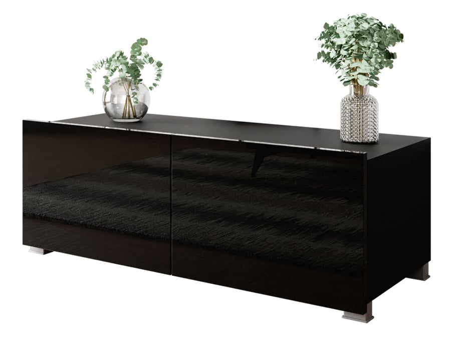 The COLAMBRINI TV unit combines a matt black body with a black gloss front and spacious cupboards, offering a modern and practical storage solution.