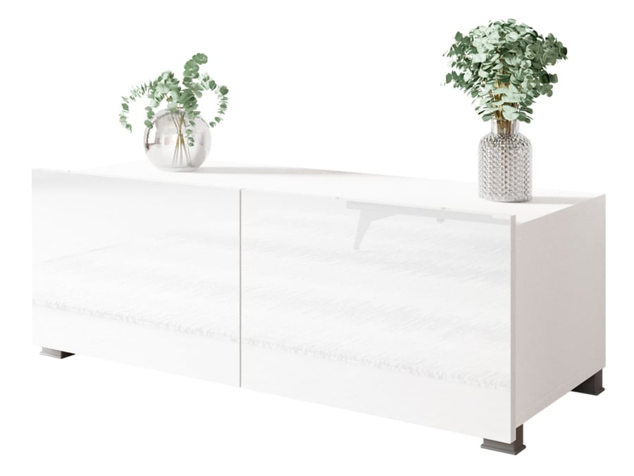 This sleek TV unit features a stylish matt white body paired with a white gloss front, creating a modern and sophisticated look. The contrast between the matte and glossy finishes adds depth and elegance, making it a standout piece in any living space. Perfect for contemporary interiors, this unit combines style with practicality.