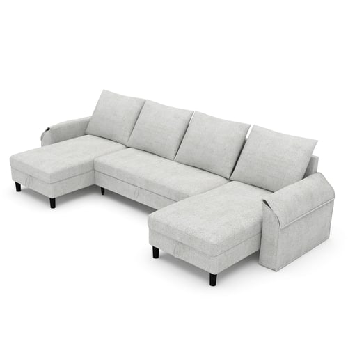 This U-shaped corner sofa bed is the perfect blend of style, comfort, and functionality. Upholstered in a modern grey fabric, it adds a fresh, neutral touch to any living space. The spacious U-shaped design offers plenty of seating, ideal for larger households or entertaining guests. Built with durable wave springs and high-quality foam, it provides excellent support and long-lasting comfort. Whether you're lounging during the day or converting it into a bed for overnight stays, this sofa delivers both practicality and contemporary charm.