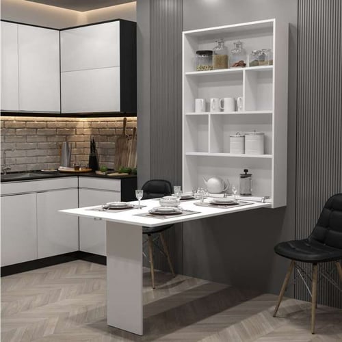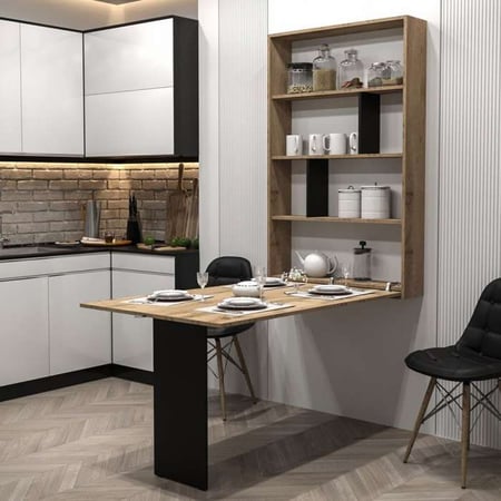 Are you a fan of innovative solutions that enhance a room's functionality? If so, the modern unfoldable table AMLAN is an excellent choice for you. Its unique design allows it to seamlessly transform from a compact, wall-mounted cabinet into a fully functional table. When folded, it resembles a stylish hanging cabinet, freeing up valuable space in the room. But when it's time for lunch or hosting guests, the table can be effortlessly extended to provide a convenient and practical surface.