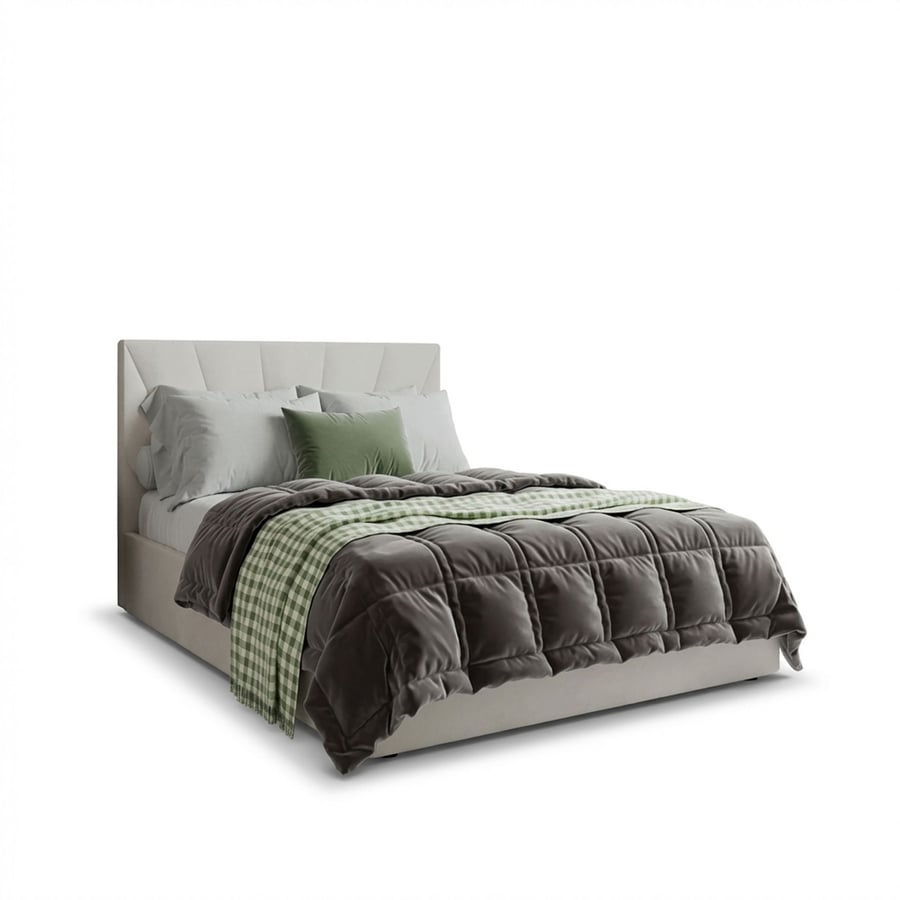 The DYLAN bed combines contemporary design with everyday functionality, creating a perfect centrepiece for any stylish bedroom. Its distinctive headboard with fan-shaped stitching adds a luxurious touch, while the soft velvet upholstery ensures comfort and sophistication. Available in two timeless colours – cream and grey – the DYLAN bed blends seamlessly into modern, minimalist and glamorous interiors.