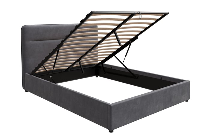 The EVERETT Bed is designed with practicality in mind, featuring a spacious ottoman storage compartment hidden beneath the sleeping surface. Thanks to the durable gas lift mechanism, the mattress base can be raised effortlessly, giving you quick and easy access to the entire under-bed area. This clever storage solution is perfect for keeping bedding, pillows, blankets, or seasonal items neatly organised while saving valuable space in your bedroom.