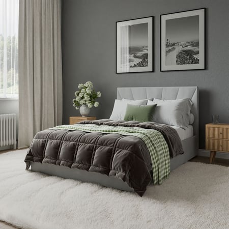 The DYLAN bed combines contemporary design with everyday functionality, creating a perfect centrepiece for any stylish bedroom. Its distinctive headboard with fan-shaped stitching adds a luxurious touch, while the soft velvet upholstery ensures comfort and sophistication. Available in two timeless colours – cream and grey – the DYLAN bed blends seamlessly into modern, minimalist and glamorous interiors.