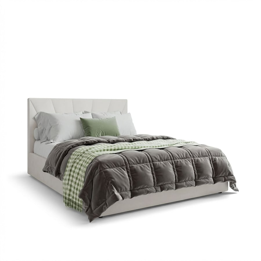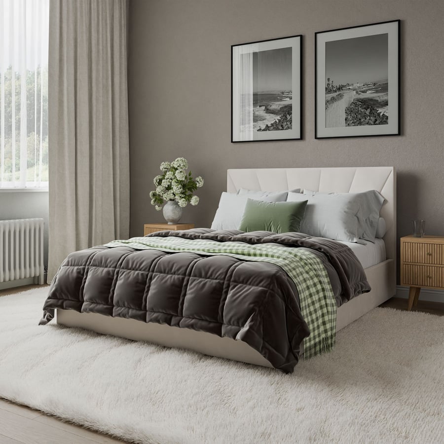 The DYLAN bed combines contemporary design with everyday functionality, creating a perfect centrepiece for any stylish bedroom. Its distinctive headboard with fan-shaped stitching adds a luxurious touch, while the soft velvet upholstery ensures comfort and sophistication. Available in two timeless colours – cream and grey – the DYLAN bed blends seamlessly into modern, minimalist and glamorous interiors.