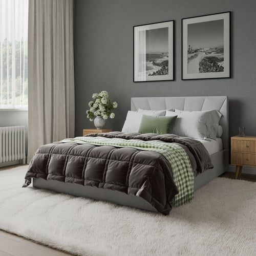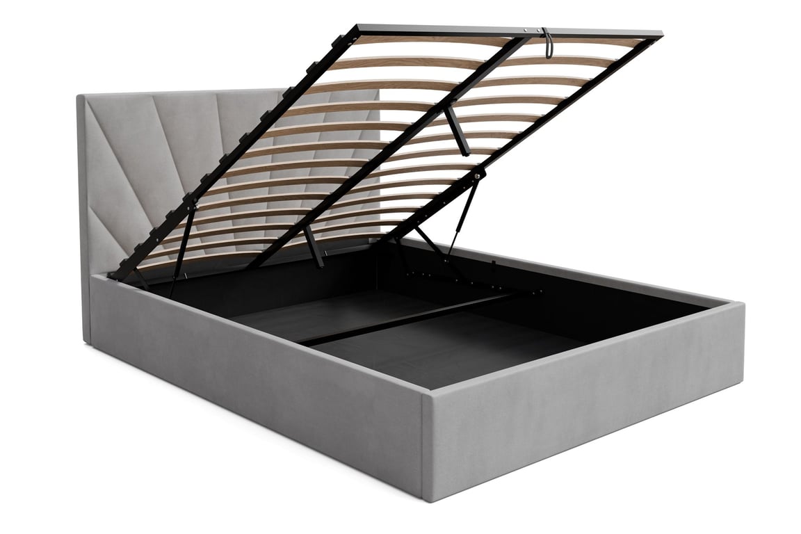 Practicality is at the heart of this design: the bed features a spacious under-bed storage compartment with gas-lift mechanics, offering a smart solution for maximising bedroom space.