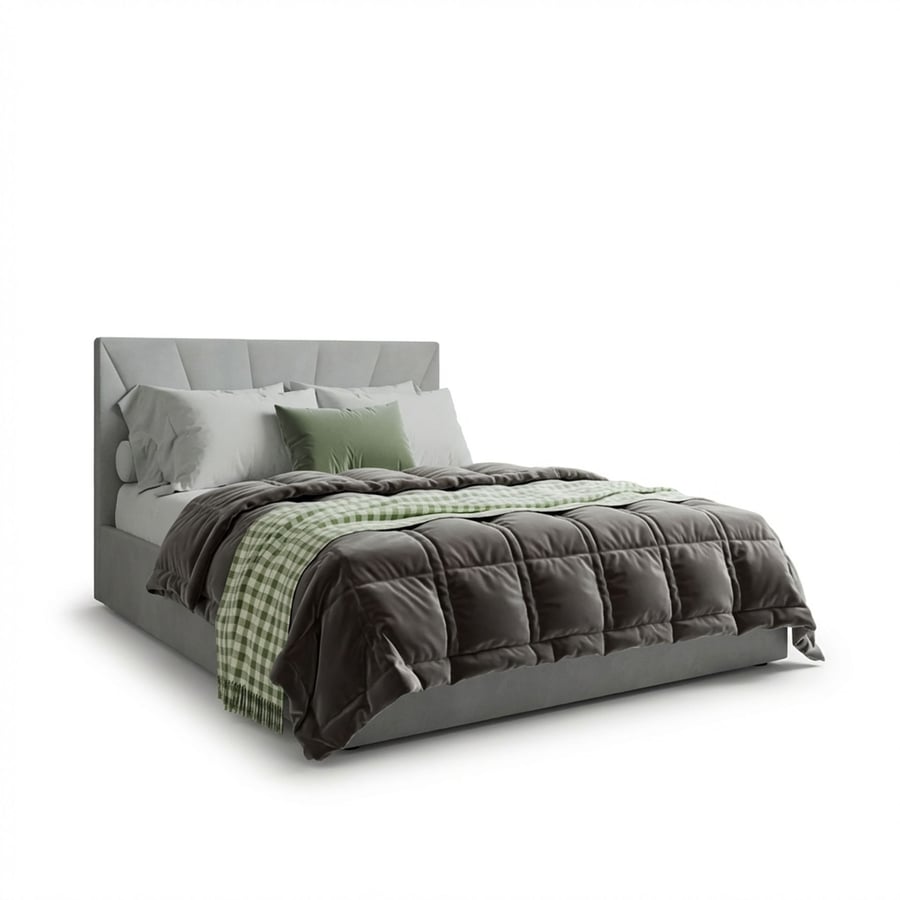 The DYLAN bed combines contemporary design with everyday functionality, creating a perfect centrepiece for any stylish bedroom. Its distinctive headboard with fan-shaped stitching adds a luxurious touch, while the soft velvet upholstery ensures comfort and sophistication. Available in two timeless colours – cream and grey – the DYLAN bed blends seamlessly into modern, minimalist and glamorous interiors.