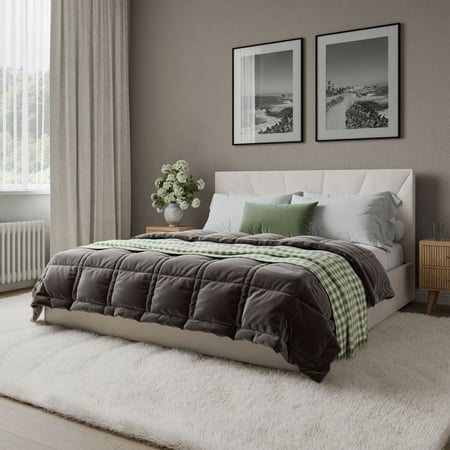 The DYLAN bed in UK Super King size is carefully proportioned to combine comfort with modern style. Measuring 215 cm in length, 190 cm in width, and 104 cm in height, it provides a generous sleeping surface of 200 × 180 cm. The frame height of 30 cm ensures a sleek, low-profile design that fits perfectly into both compact and spacious bedrooms.