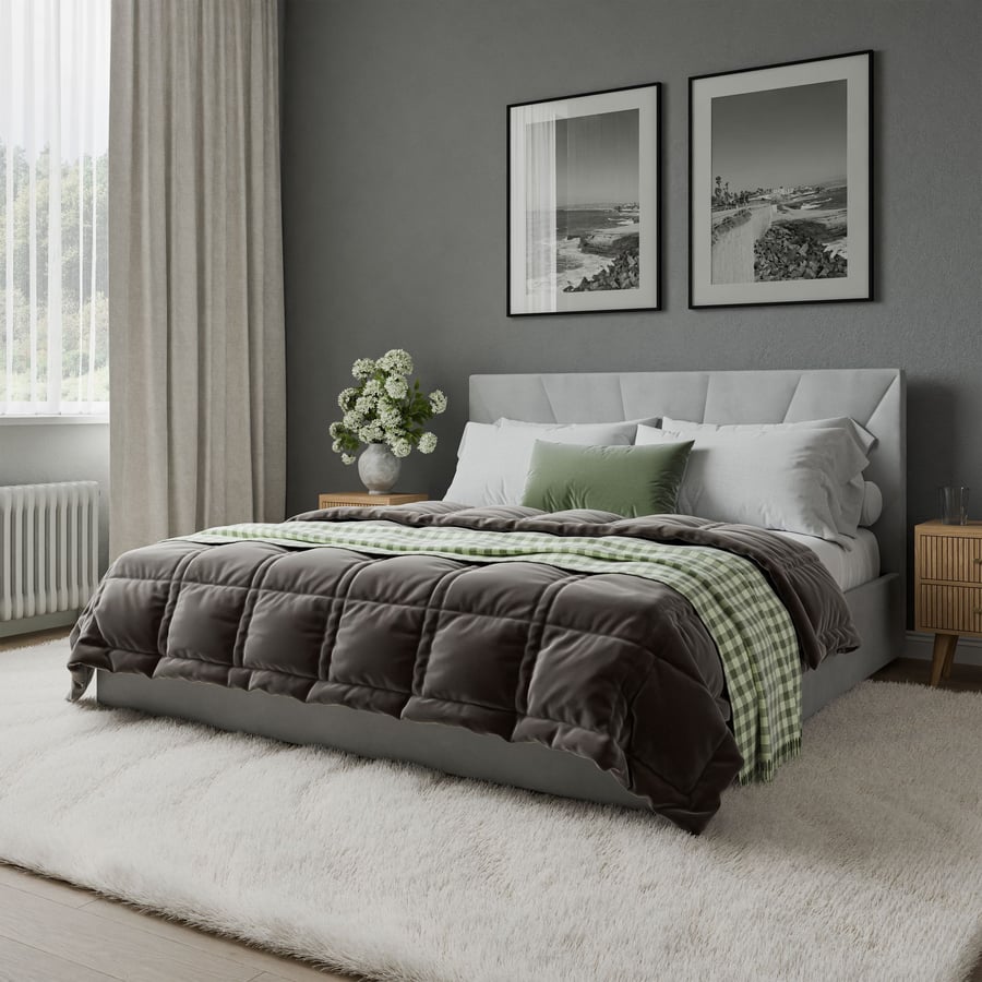 The DYLAN bed combines contemporary design with everyday functionality, creating a perfect centrepiece for any stylish bedroom. Its distinctive headboard with fan-shaped stitching adds a luxurious touch, while the soft velvet upholstery ensures comfort and sophistication. Available in two timeless colours – cream and grey – the DYLAN bed blends seamlessly into modern, minimalist and glamorous interiors.
