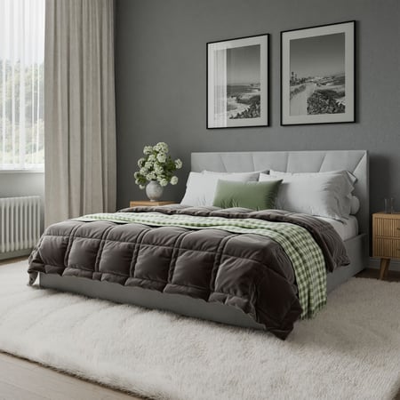 The DYLAN bed in UK Super King size is carefully proportioned to combine comfort with modern style. Measuring 215 cm in length, 190 cm in width, and 104 cm in height, it provides a generous sleeping surface of 200 × 180 cm. The frame height of 30 cm ensures a sleek, low-profile design that fits perfectly into both compact and spacious bedrooms.
