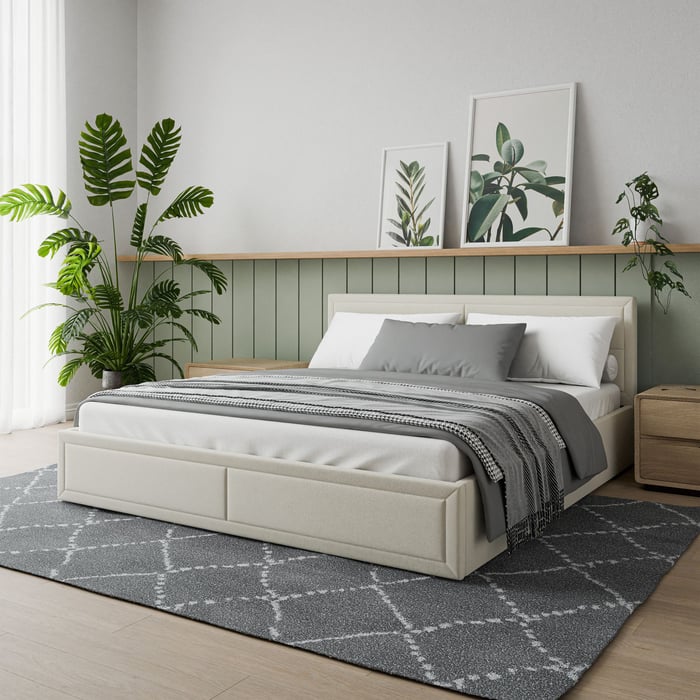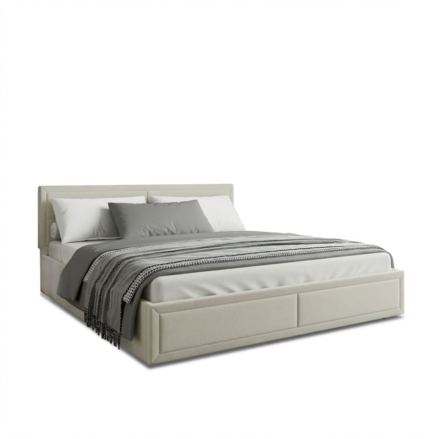 The JAYDEN bed combines contemporary elegance with practical functionality. Its upholstered frame and soft, panel-stitched headboard create a refined and comfortable centerpiece for any bedroom. Equipped with a spacious under-bed storage compartment, JAYDEN is as practical as it is stylish. Available in two timeless colours — Grey and Beige — and three different sizes, this bed effortlessly fits both modern and classic interiors.